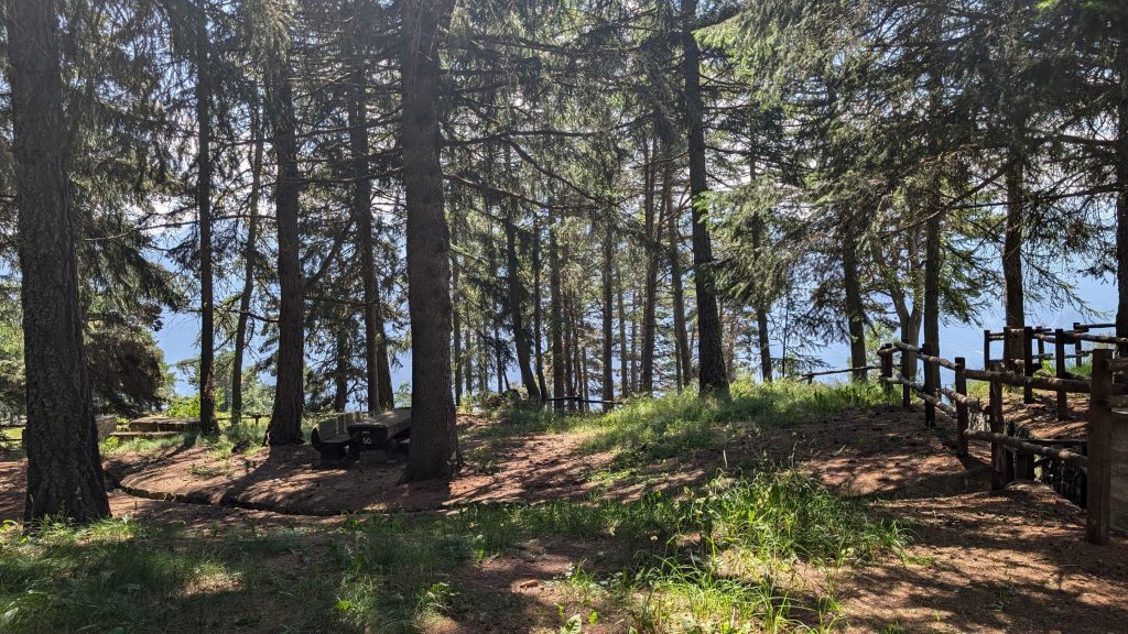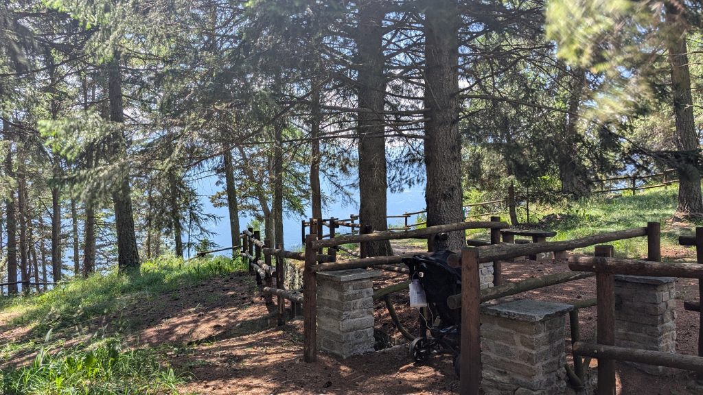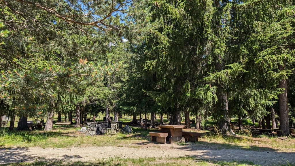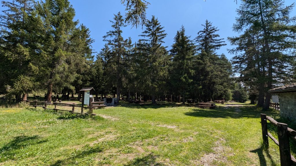All’arrivo, sulla destra, si trova un’ampia zona pic-nic con tavoli (7 euro a tavolo da pagare al bar-ristorante La Tana degli Orsi). Questa area è facilmente accessibile alle persone con disabilità grazie al terreno pianeggiante. I tavoli sono situati in una pineta, garantendo ombra e un ambiente fresco.