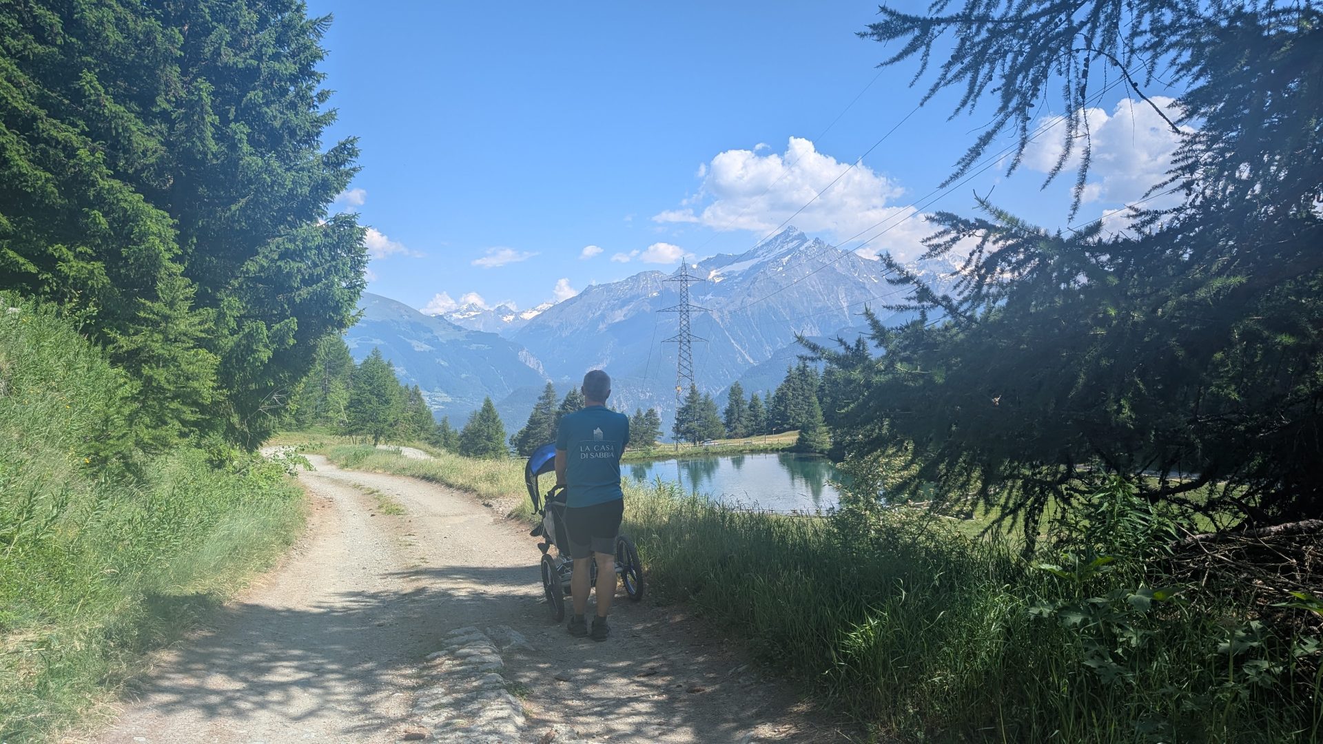 Il ristorante è a circa 6 chilometri dal lago: la strada è ampia e il paesaggio incantevole, ma i saliscendi, seppur dolci, alla lunga si fanno sentire – soprattutto spingendo il passeggino.