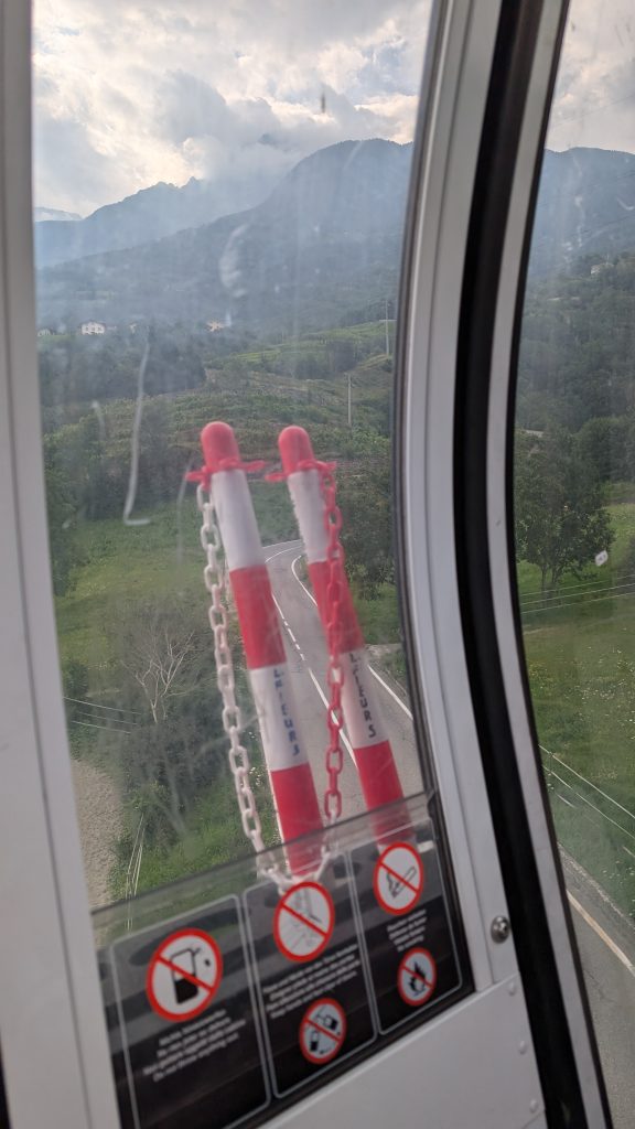 Il viaggio dura 18 minuti e comprende due stazioni intermedie; si scende solo alla terza stazione, a Pila. All’arrivo, vi aspetta una splendida vista sulle cime della Valle d’Aosta.